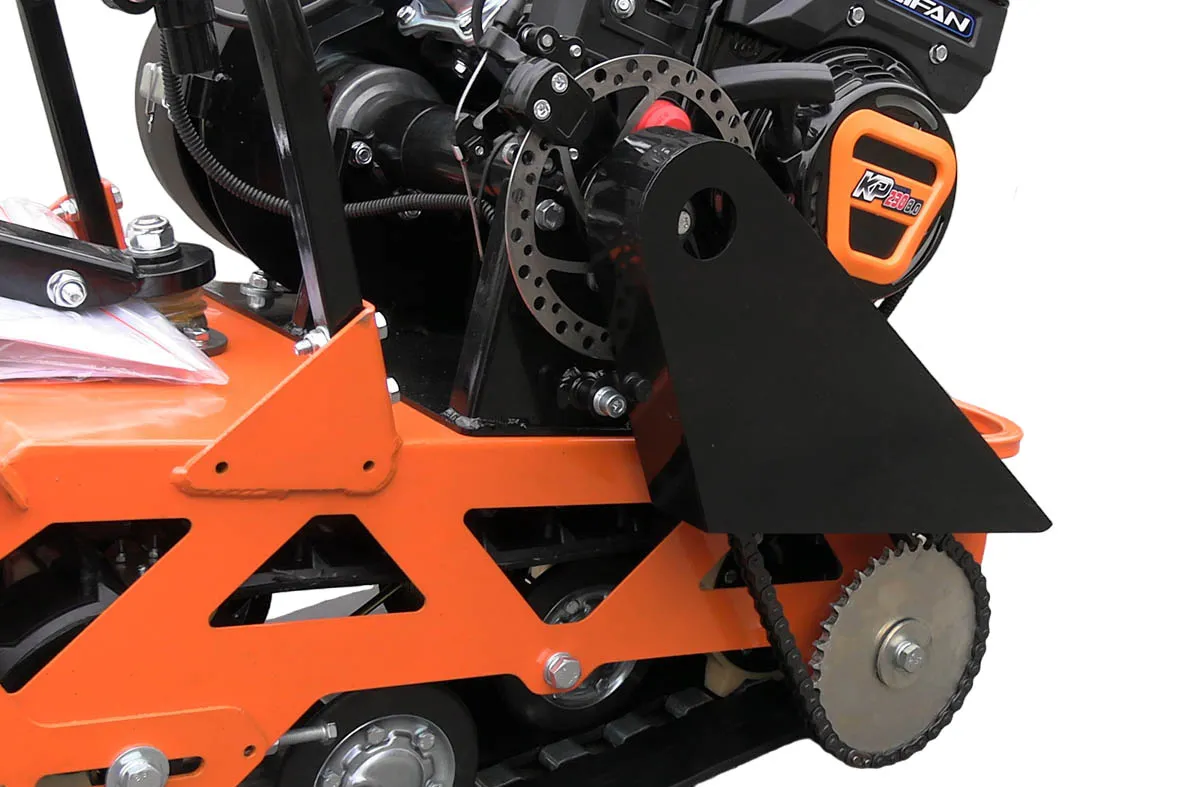 В Белка CVT используется гусеница производства НПО Композит, шириной 380мм и длиной 1414мм. Эта гусеница не разрезная, т.е. она цельная, что обеспечивает ее надежность. Плюсами белки CVT является то, что в ней есть установленный дисковый механический тормоз, а также в комплект поставки входит седельный модуль.