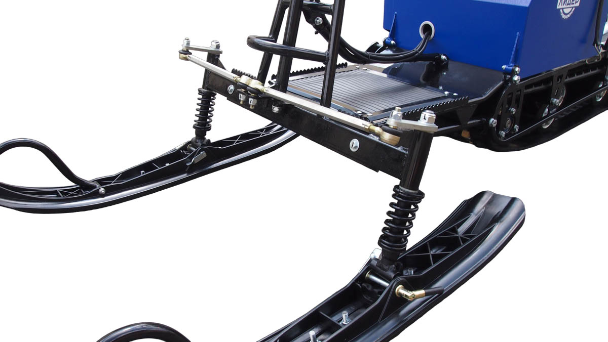Буксировщики лидер имеют все по умолчанию катковую подвеску, т.е. на тележках типа Буран, амортизация осуществляется за счёт пружин. Данная подвеска является самой универсальной, она позволяет ездить в любых условиях, но редко покупатели предпочитают в её пользу склизовую подвеску для езды, например, по более глубокому снегу, поскольку, склизовая подвеска в меньшей степени забивается снегом, соответственно, из неё не надо снег выколачивать. Но, минусом является то что, есть сменные элементы - это сами склизы, они постепенно стираются, их надо будет менять.