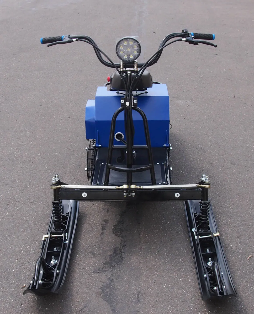 Буксировщик весит больше 100 кг, поэтому пневматическая подвеска меньше забивается снегом, поскольку там нет пружин, такая подвеска более комфортна, колесики пневматические обеспечивают мягкость.