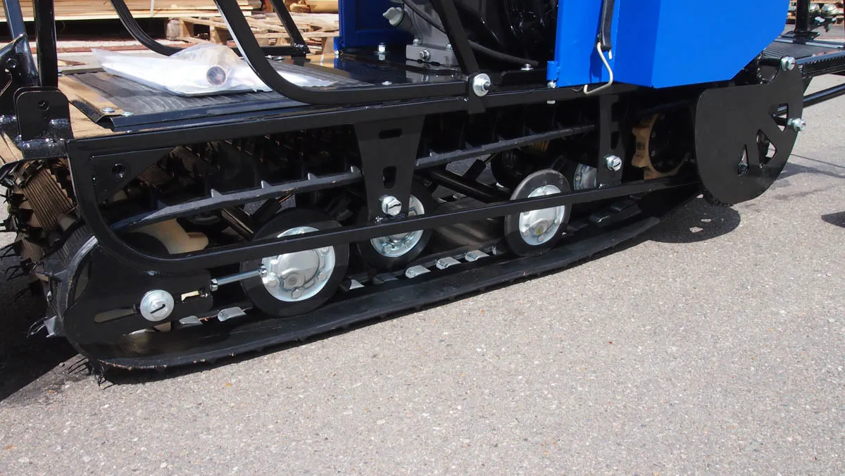 Из импортных комплектующих применяются проверенные за много лет и наиболее распространенные в России двигатели LIFAN. Для двигателей LIFAN легко найти запчасти на рынке, в большинстве случаев запчасти не взаимозаменяемые с другими китайскими двигателями. Есть модификации с двигателями ZONGSHEN и MAGNUM, которые не уступают по качеству LIFAN, но чуть более доступны по цене. В основном же применяются российские комплектующие - вариатор и детали трансмиссии - г. Рыбинск, гусеница - г. Курск, рама и прочие корпусные детали, коробка реверса, лыжи - ИжТехМаш, г. Ижевск. В трансмиссии используются более дорогие приводные цепи - производства Даугавпилс (https://ru.wikipedia.org/wiki/DITTON), завод производит цепи с 1949 года и они превосходят по качеству китайские и российские аналоги. В целом, в конструкции использованы широко доступные на рынке комплектующие, поэтому найти при необходимости нужную запчасть не составит особого труда. В частности, любые запчасти вы можете приобрести в нашем магазине.