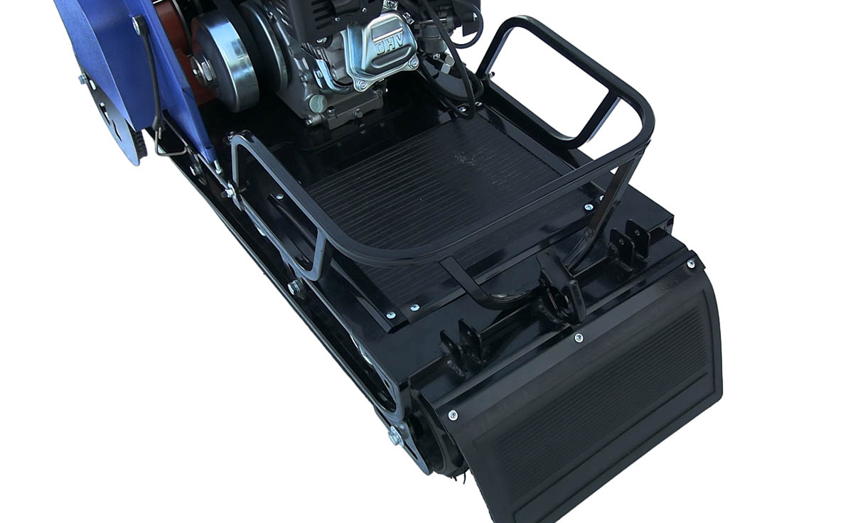 Буксировщик весит больше 100 кг, поэтому пневматическая подвеска меньше забивается снегом, поскольку там нет пружин, такая подвеска более комфортна, колесики пневматические обеспечивают мягкость.