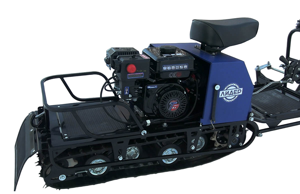 Мотобуксировщики серии ЛИДЕР спроектированы под более мощные двигатели, от 9 до 29 л.с. Такие двигатели имеют выходной вал 25 мм и применяются с вариатором от снегохода Буран - вариатором Сафари. В базе данные буксировщики имеют гусеницу COMPOSIT Буксировщик (г. Курск), 500 х 2828 мм. Есть модификации буксировщиков Лидер серии LONG (гусеница 500х3333 мм) и SUPERLONG (500 х 3636 мм).