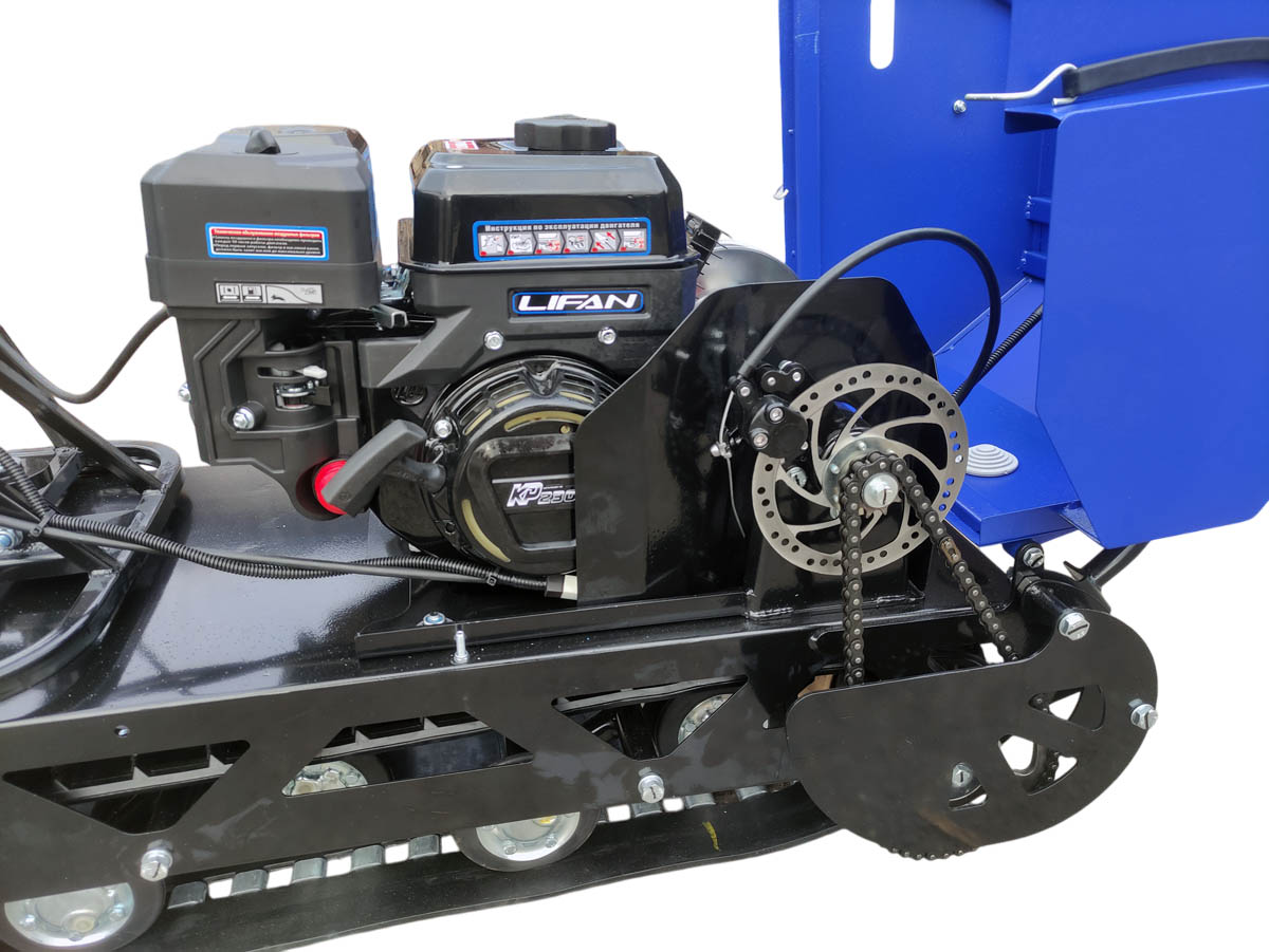 Из импортных комплектующих применяются проверенные за много лет и наиболее распространенные в России двигатели LIFAN. Для двигателей LIFAN легко найти запчасти на рынке, в большинстве случаев запчасти не взаимозаменяемые с другими китайскими двигателями. Есть модификации с двигателями ZONGSHEN и MAGNUM, которые не уступают по качеству LIFAN, но чуть более доступны по цене. В основном же применяются российские комплектующие - вариатор и детали трансмиссии - г. Рыбинск, гусеница - г. Курск, рама и прочие корпусные детали, коробка реверса, лыжи - ИжТехМаш, г. Ижевск. В трансмиссии используются более дорогие приводные цепи - производства Даугавпилс (https://ru.wikipedia.org/wiki/DITTON), завод производит цепи с 1949 года и они превосходят по качеству китайские и российские аналоги. В целом, в конструкции использованы широко доступные на рынке комплектующие, поэтому найти при необходимости нужную запчасть не составит особого труда. В частности, любые запчасти вы можете приобрести в нашем магазине.