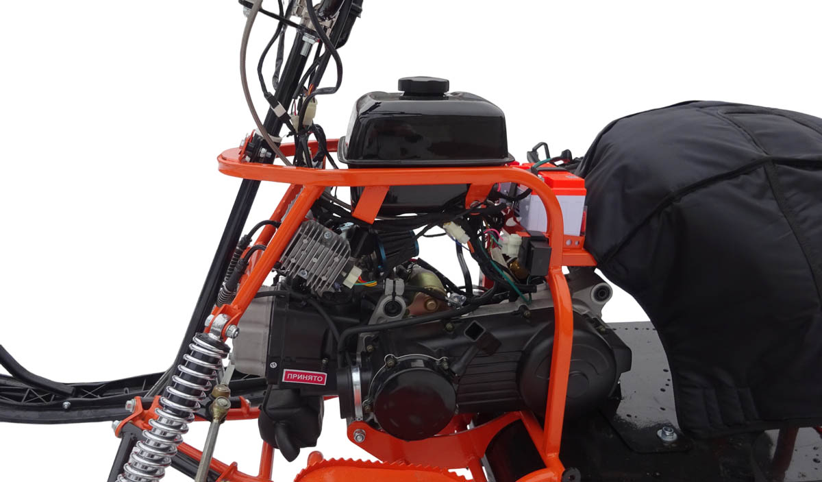 Двигатель типа Lifan - это двигатель генераторного типа и он работает в режиме, когда при запуске он сразу же выходит на максимальные обороты и после этого уже скорость не изменяется, что несколько ограничивает динамику буксировщика. В то время как снегоходный двигатель дает гораздо лучшую динамику и большую максимальную скорость буксировщику. Управлять таким буксировщиком намного комфортнее и удобнее, нежели обычным буксировщиком.