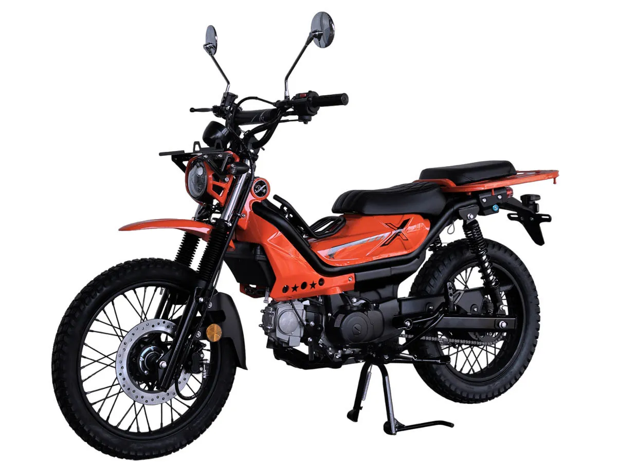Мопед XTRAIL выполнен в стиле всем известного мопеда Хонда Трэйл (или HONDA CT), это универсальный мопед для езды на как по асфальту, так и по легкому бездорожью.