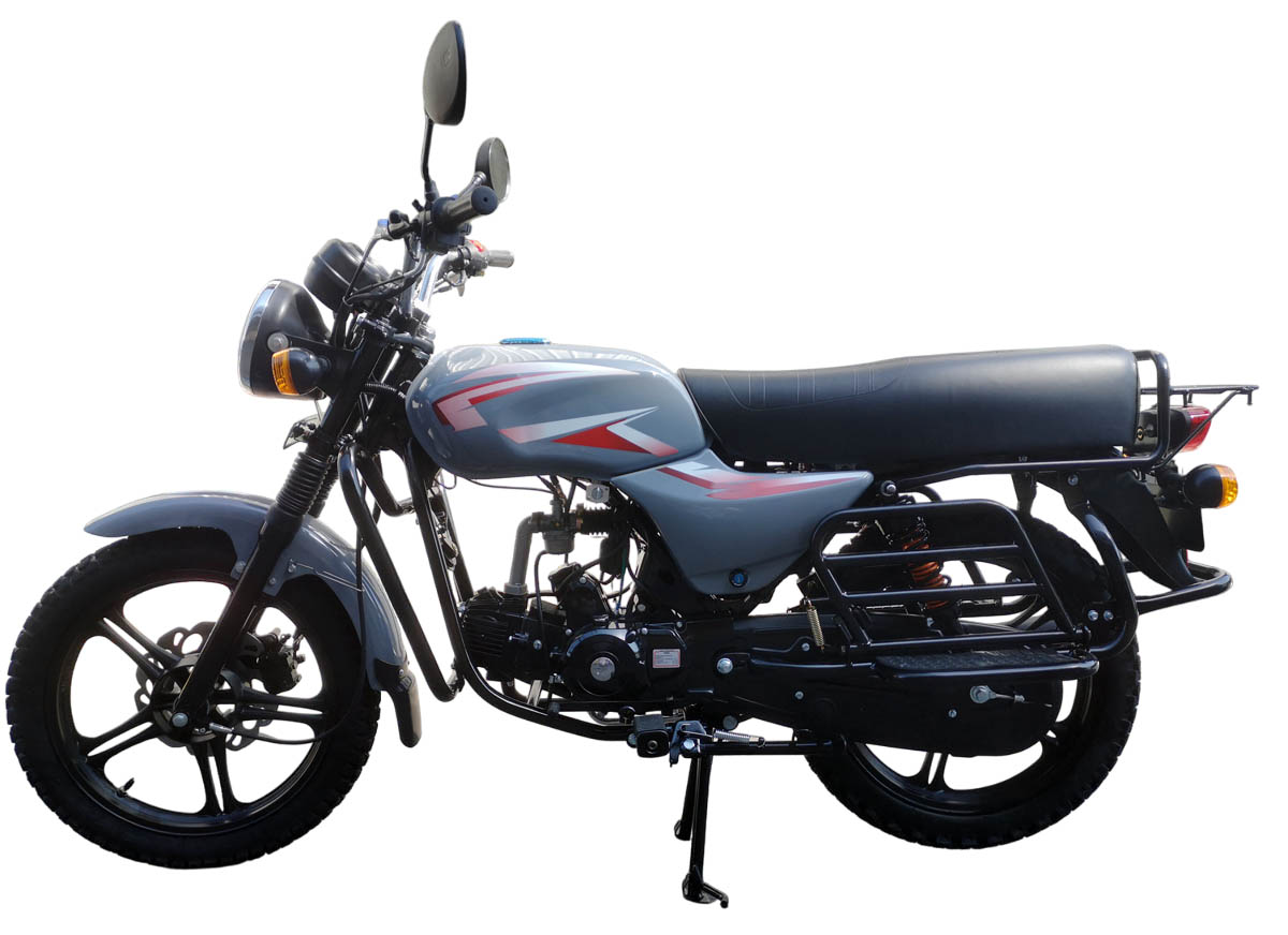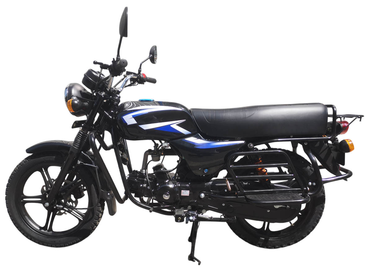 У мопеда COMPASS литые диски, резина - 2.75-17" / 3.00-17" с комбинированным рисунком, что позволяет мопеду уверенно ехать и по асфальту и по грунтовке, передний дисковый тормоз, коробка передач 4х ступенчатая, некруговая, все вниз, задняя подвеска состоит из амортизаторов с 2-мя пружинами, что считается более серьезным вариантом с точки зрения грузоподъёмности.
