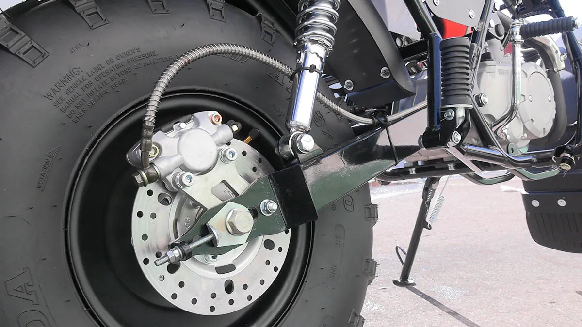Отличительно особенностью являются широкие колеса низкого давления , размером 10 дюймов, которые используются от квадроциклов АТВ. Это дает мотоциклу большую устойчивость, т.е на нем комфортно, с точки зрения устойчивости по внедорожной местности , ухабистой местности , это дает большую проходимость в условиях с бездорожья.