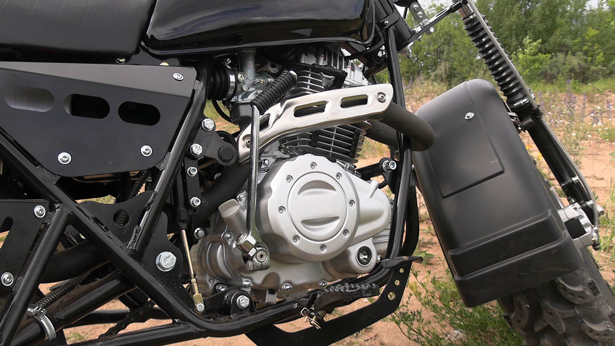 - конструкция мотоцикла очень проста, он состоит из минимума деталей и узлов. Основные узлы, такие как двигатель LIFAN 168F-2, продаются на российском рынке годами, их качество не вызывает сомнений. Детали, например двигателя LIFAN, легко можно купить на рынке при необходимости тех. обслуживания или ремонта (например фильтры). Редуктор с автоматическим сцеплением и его детали также всегда есть в свободной продаже почти повсеместно, и цена деталей не высока (весь редуктор в сборе стоит 3750 руб.).