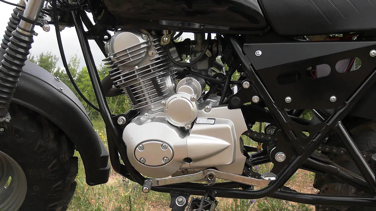 - в мотоцикле нет множества "лишних" деталей, он расчитан на простое функциональное использование и обслуживание обычным человеком - нет изобилия пластиковых декоративных облицовок, сложной светотехники, сложной подвески, панели приборов, сложной электро проводки, сложной системы питания двигателя и выхлопа, сложной рамы и плотно упакованных в неё компонентов, сложной трансмиссии.